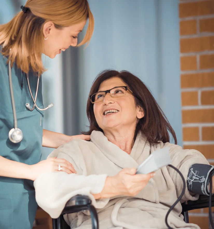 Qualified nursing assistance at home for health monitoring and clinical support.
